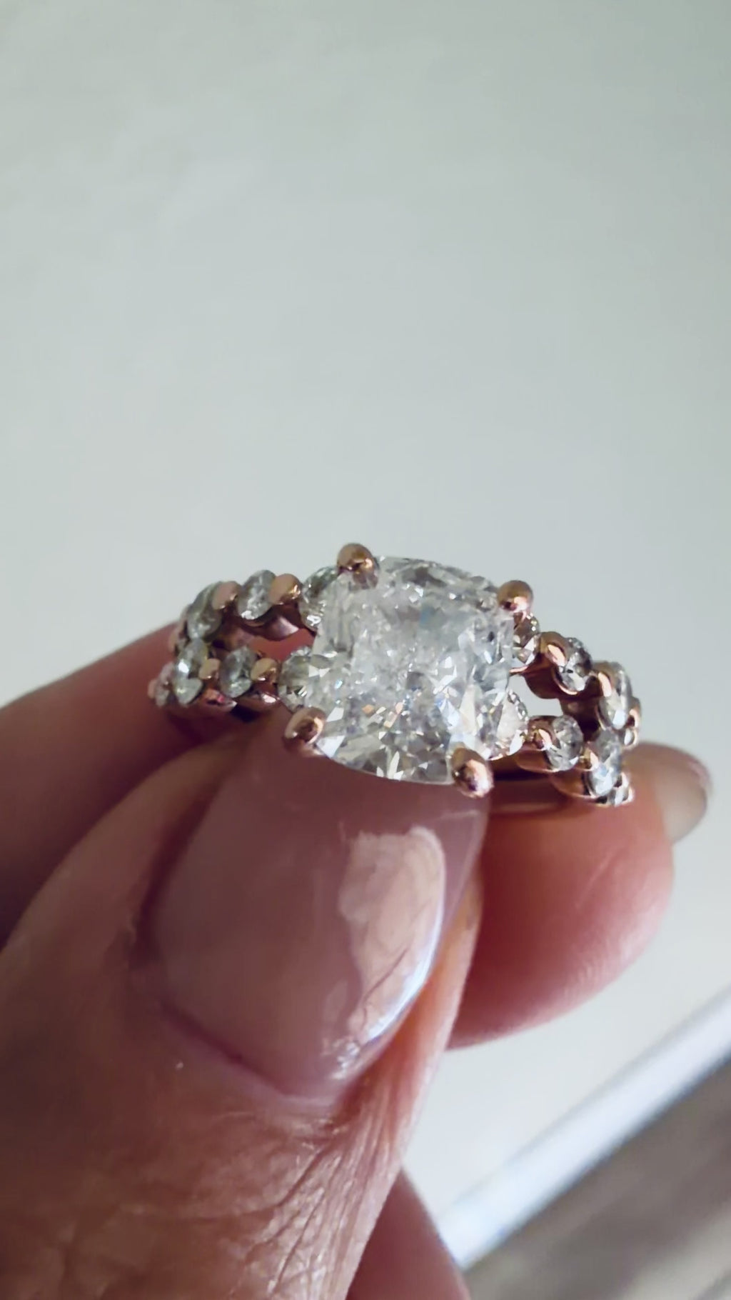 14k Rose Gold Natural Diamond Engagement Ring and Wedding Band